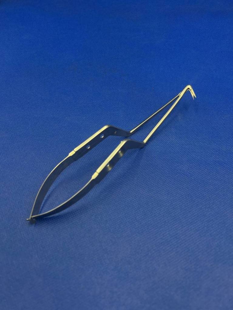 La Pinza de Hipófisis es una herramienta quirúrgica diseñada para procedimientos delicados en la base del cráneo, especialmente en intervenciones transesfenoidales. Su diseño tipo bayoneta permite un acceso profundo con mínima interferencia visual, facilitando la extracción precisa de tejidos en la región hipofisaria.